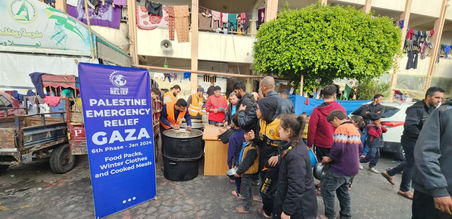 2,000 pek makanan panas, 200 bantuan pek makanan dan pakaian musim sejuk untuk 100 orang kanak-kanak di Kem Deir Al Balah.